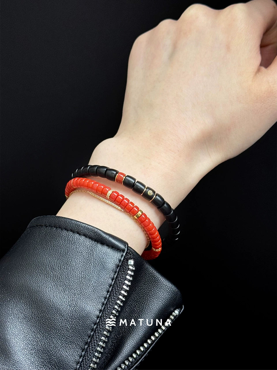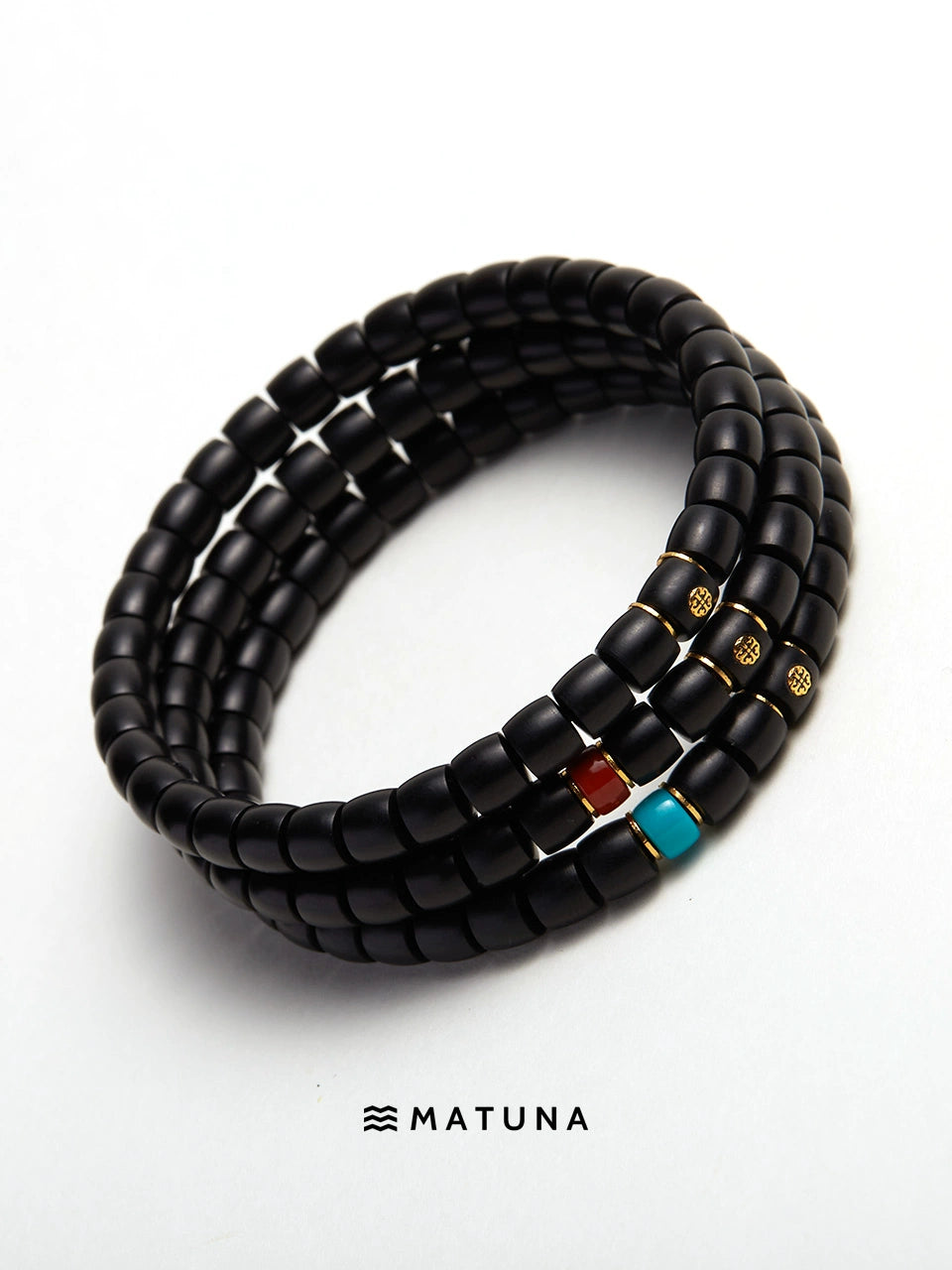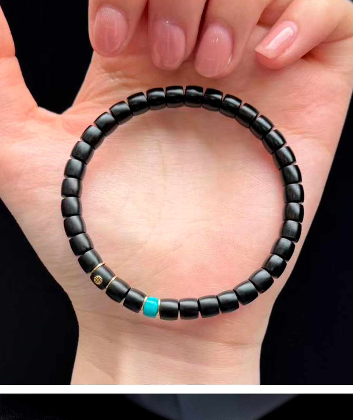 G181 Night Charm matuna natural ebony bracelet with raw turquoise 18k gold septum bracelet for men and women gifts