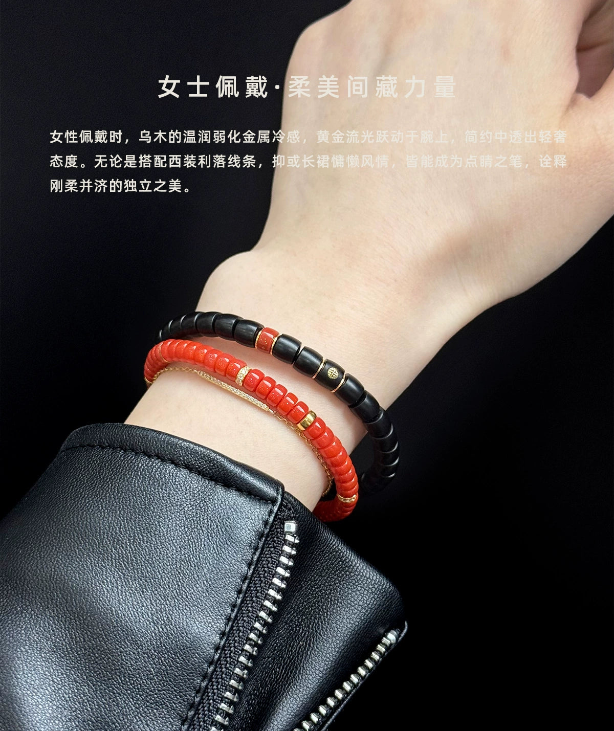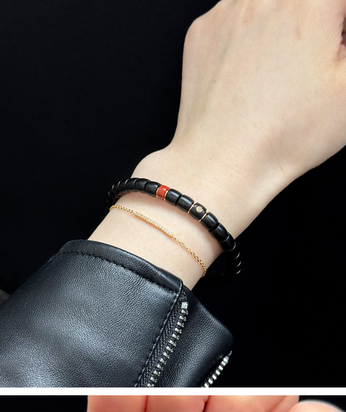 • G181 Night Charm matuna natural ebony bracelet with raw turquoise 18k gold septum bracelet for men and women gifts