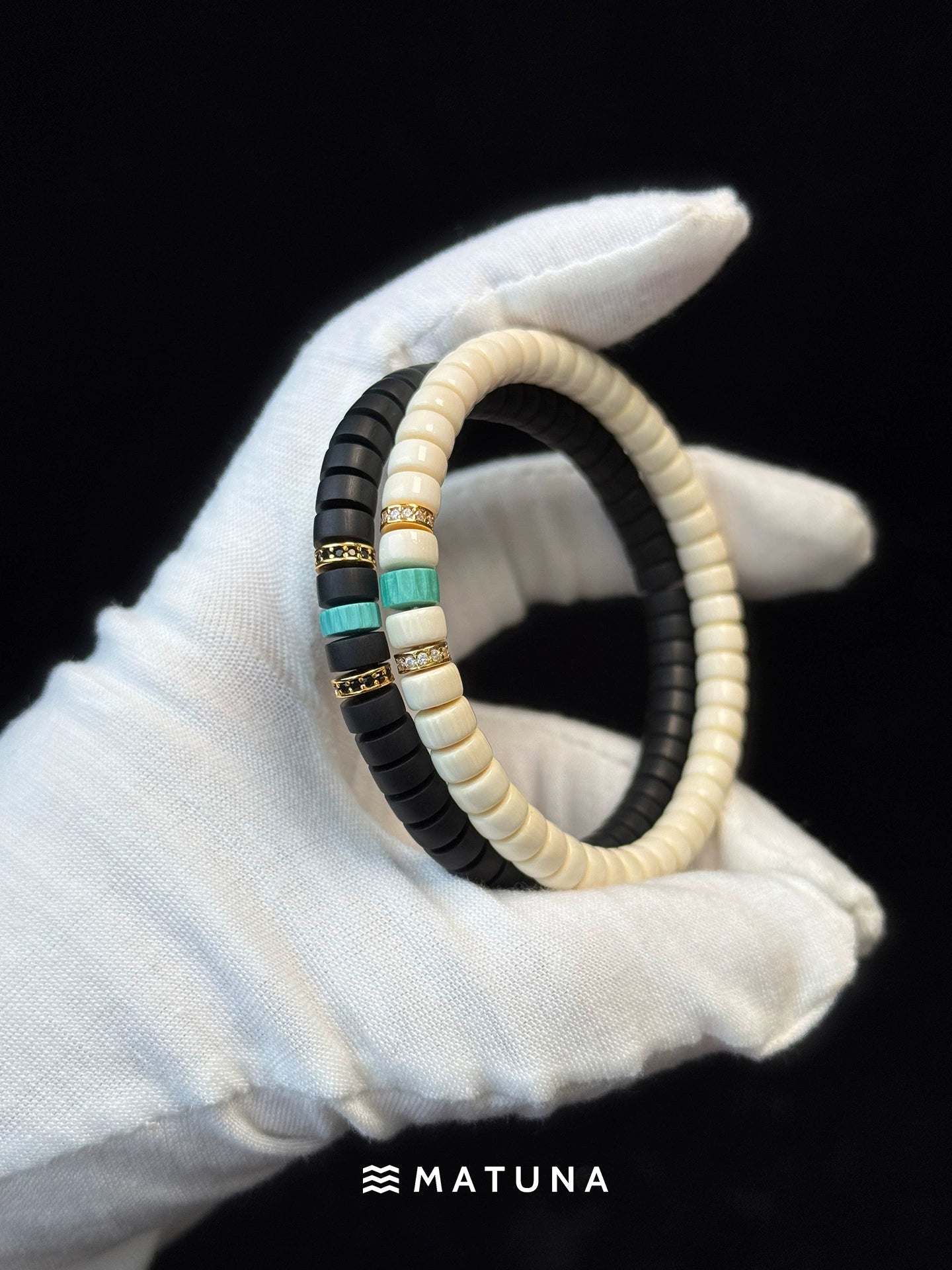 M98 Contract matuna natural mammoth ivory ebony with turquoise bracelet couple bracelet Valentine's Day gift