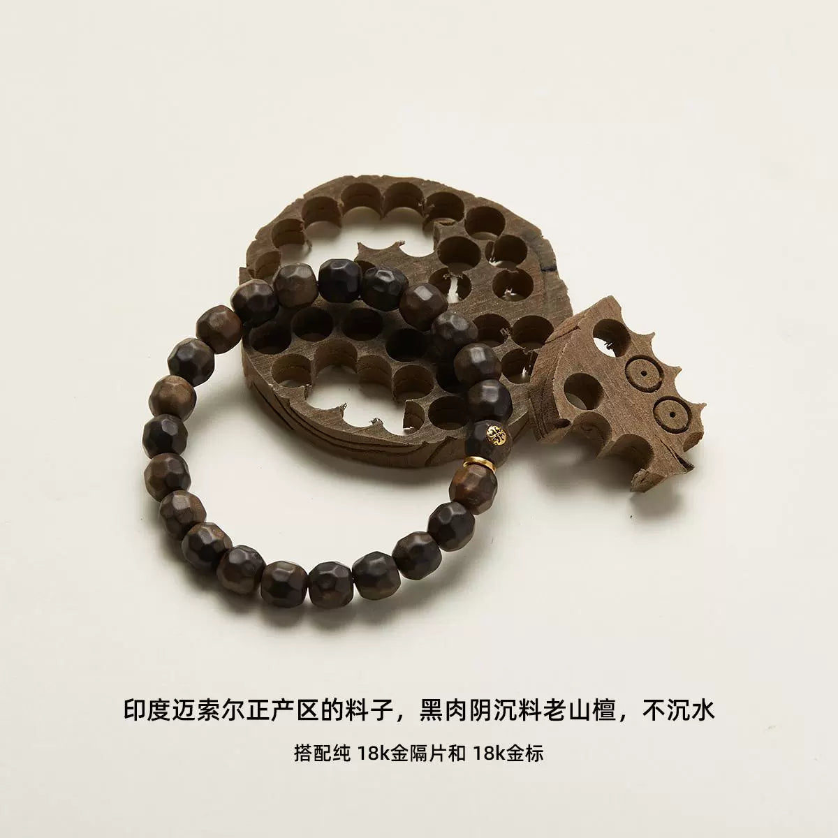 • G91 gold standard matuna black meat faceless old mountain sandalwood bracelet 18k gold septum return round bracelet Mysore positive area