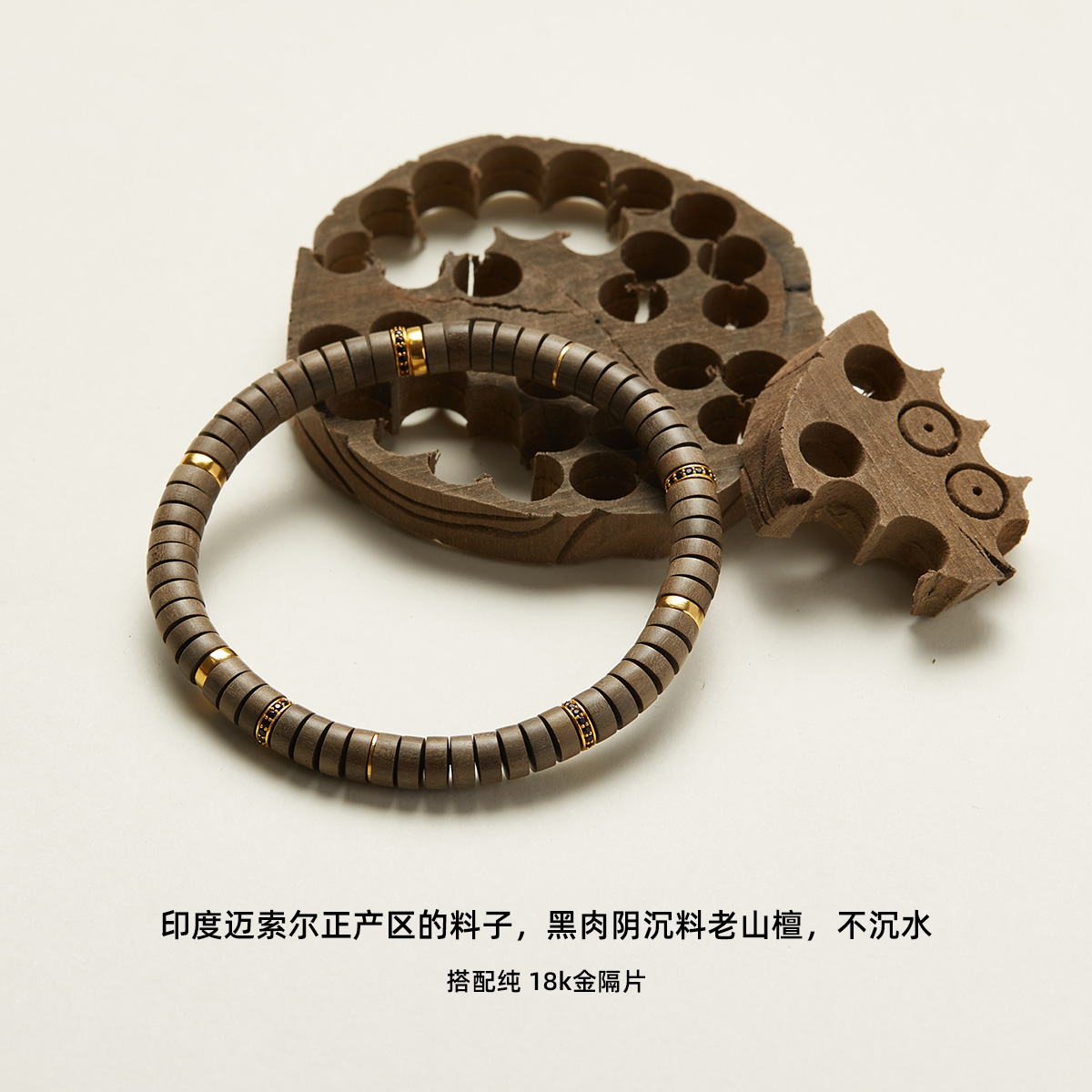 G87 Baijingting same matuna India Mysore positive district black meat old mountain sandalwood bracelet straight cut 18k gold bracelet