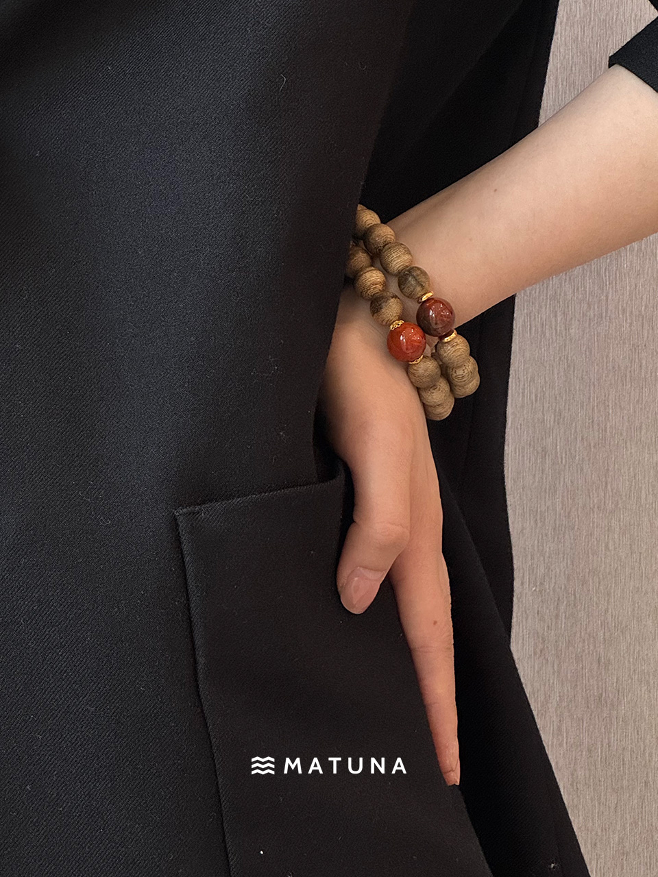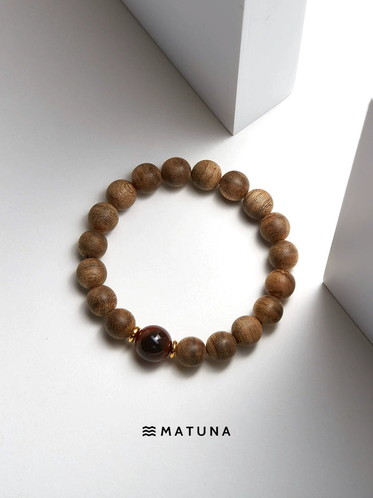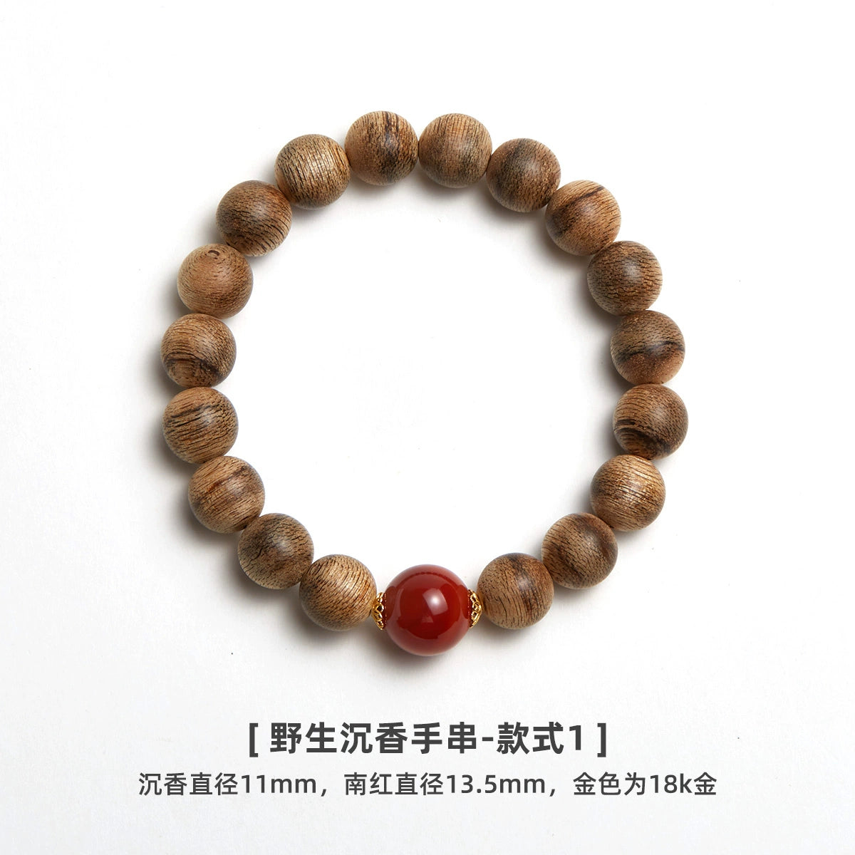 • G191 round bead matuna Brunei wild agarwood bracelet plain string single circle flower fragrance 18k gold women's bracelet